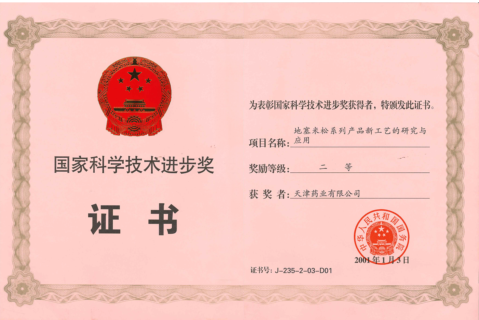 It has undertaken more than40 nationwide and Tianjin-level scientific research projects, and its project" Innovation and Research on Core Technology System for SecondaryDevelopment of Proprietary Chinese Medicine and its Industrialization" wonthe first prize of the National Science and Technology Progress Award.